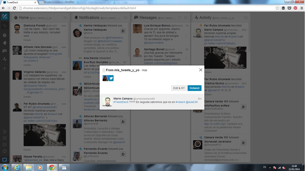 TweetDeck es muy útil para llevar varias cuentas a la vez. Por ejemplo, podremos retuitear un tuit y hacerlo en nombre de otro usuario.