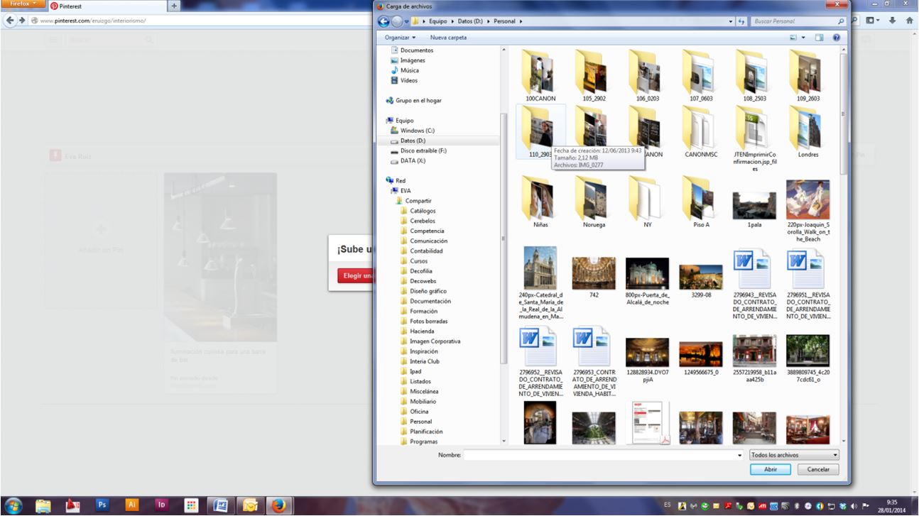 Esta opción sí es muy interesante y tan fácil como subir una foto desde el Explorador de windows: Pinterest nos abre un recuadro donde pulsaremos «elegir una imagen», nos abrirá nuestro Explorador, seleccionaremos la foto, pulsaremos el botón Abrir y voilà: