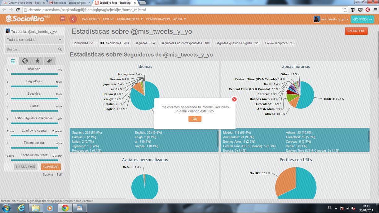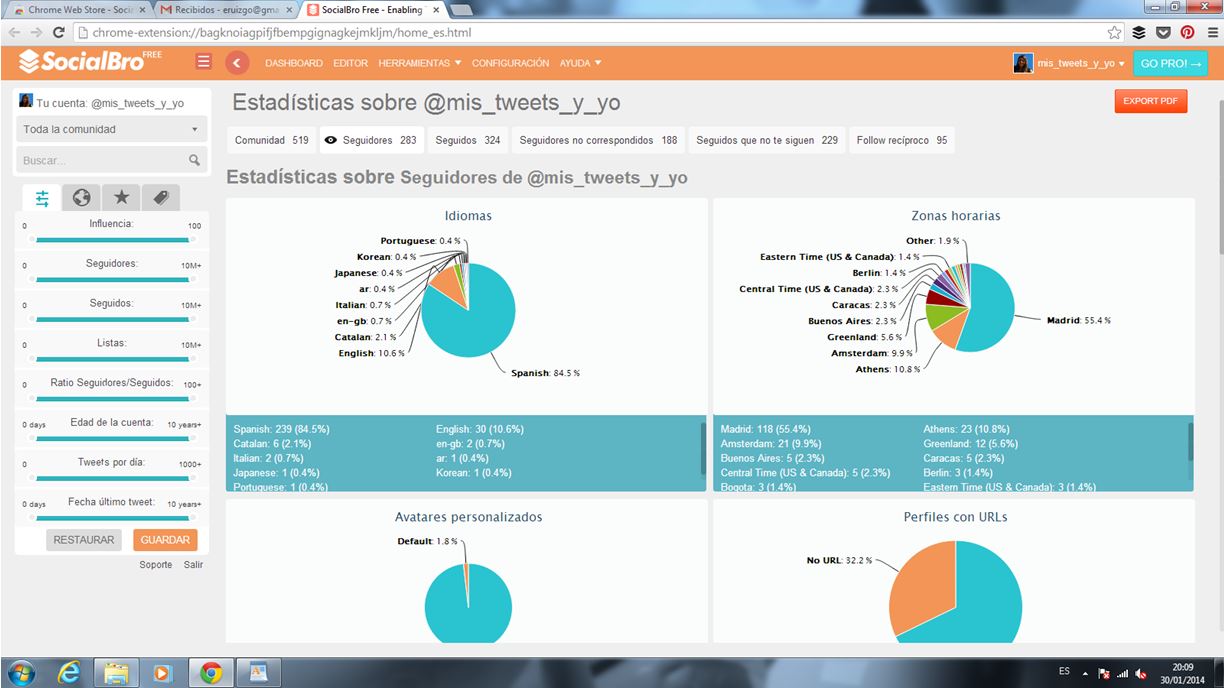 - Debajo, «Avatares personalizados» nos indica los seguidores que tienen foto de perfil (es una forma de identificar a novatos o spamers, que muchas veces no tienen foto de perfil)