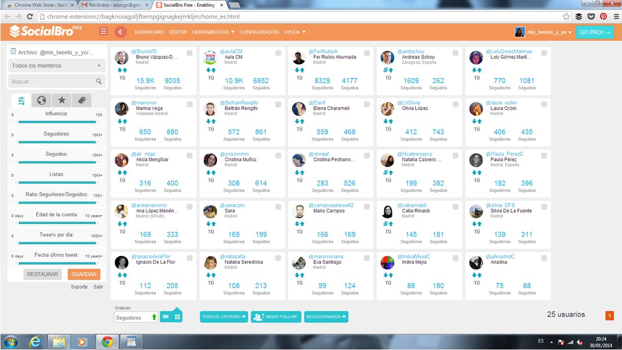 - SocialBro siempre ordena de la mejor a la peor cuenta según el número de seguidores